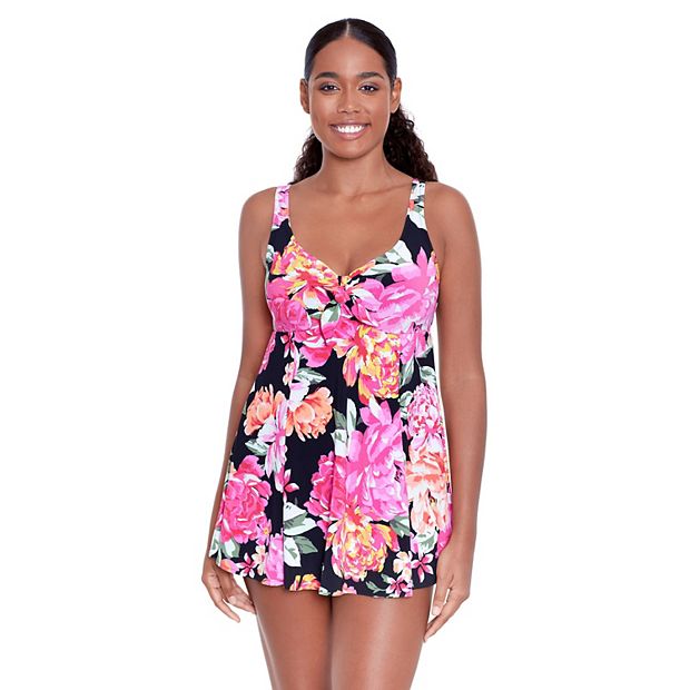 Plus Size Bal Harbour Floral Bow Front One Piece Swim Dress Very well made.