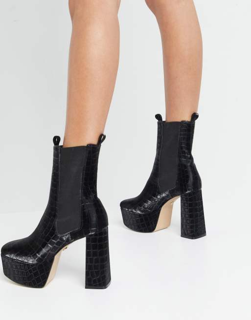 KG by Kurt Geiger Tate platform heeled boots in black croc Very well made.