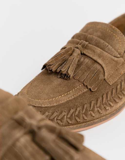 KG by Kurt Geiger wide fit loafer with woven detail in tan suede Very well made.