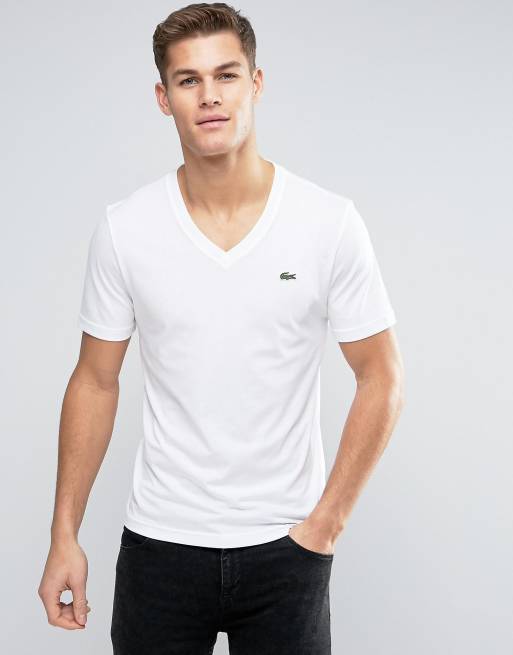 Lacoste Live V Neck T Shirt Croc Logo Slim Fit in White ASOS Very well made.
