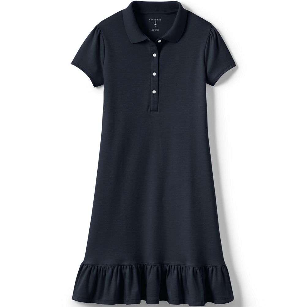 Lands End School Uniform Girls Short Sleeve Knit Bottom Ruffle Dress Below the Knee Very well made.