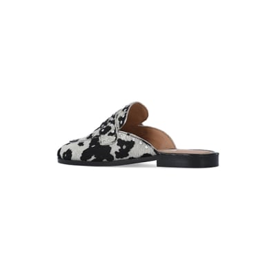 Black animal print leather backless loafers River Island Very well made.