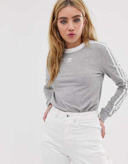 adidas Originals Grijs T shirt met lange mouwen en drie strepen Very well made.