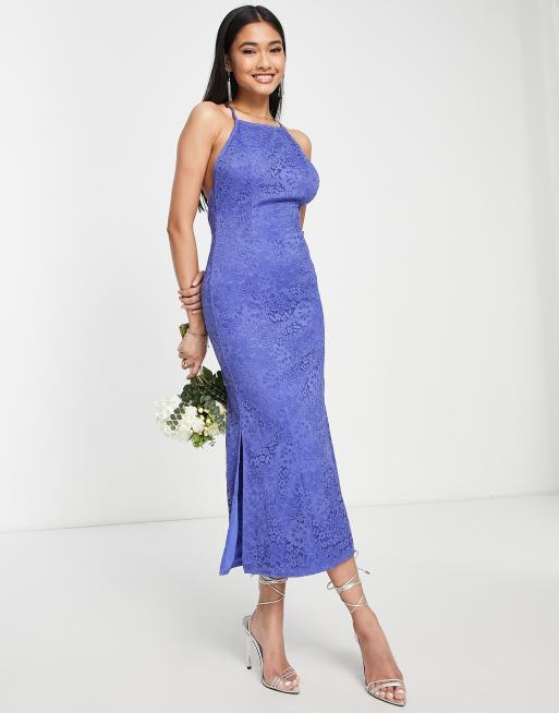 Little Mistress Bridesmaid lace maxi dress with low back in blue Very well made.