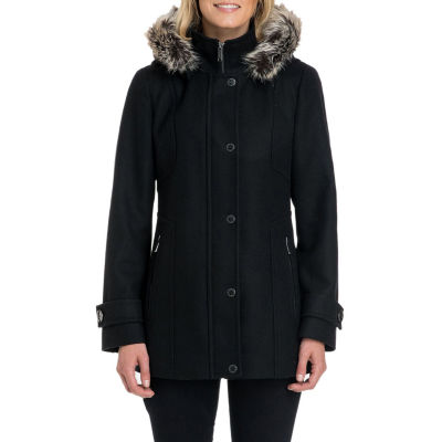London Fog Women s Faux Fur Trim Hooded Wool Blend Walker Coat Very well made.