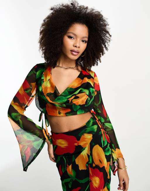 Shaylyn Floral Long Sleeve Chiffon Crop Top Pippa Pearl Very well made.