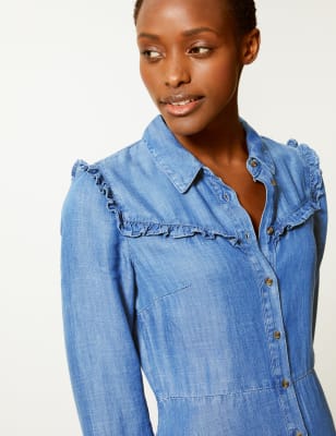 Miss Selfridge poplin frill detail shirt dress in black Very well made.