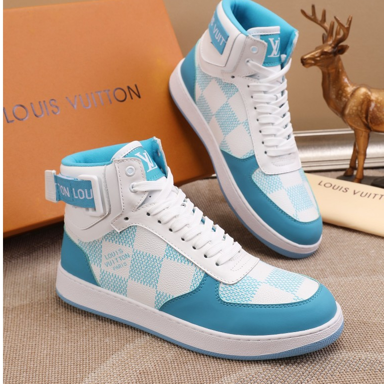 Original Louis Vuitton LV White Blue Casual High Cut Sneakers Very well made.