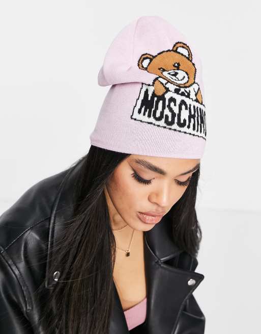 Moschino large teddy logo beanie hat in pink ASOS Very well made.