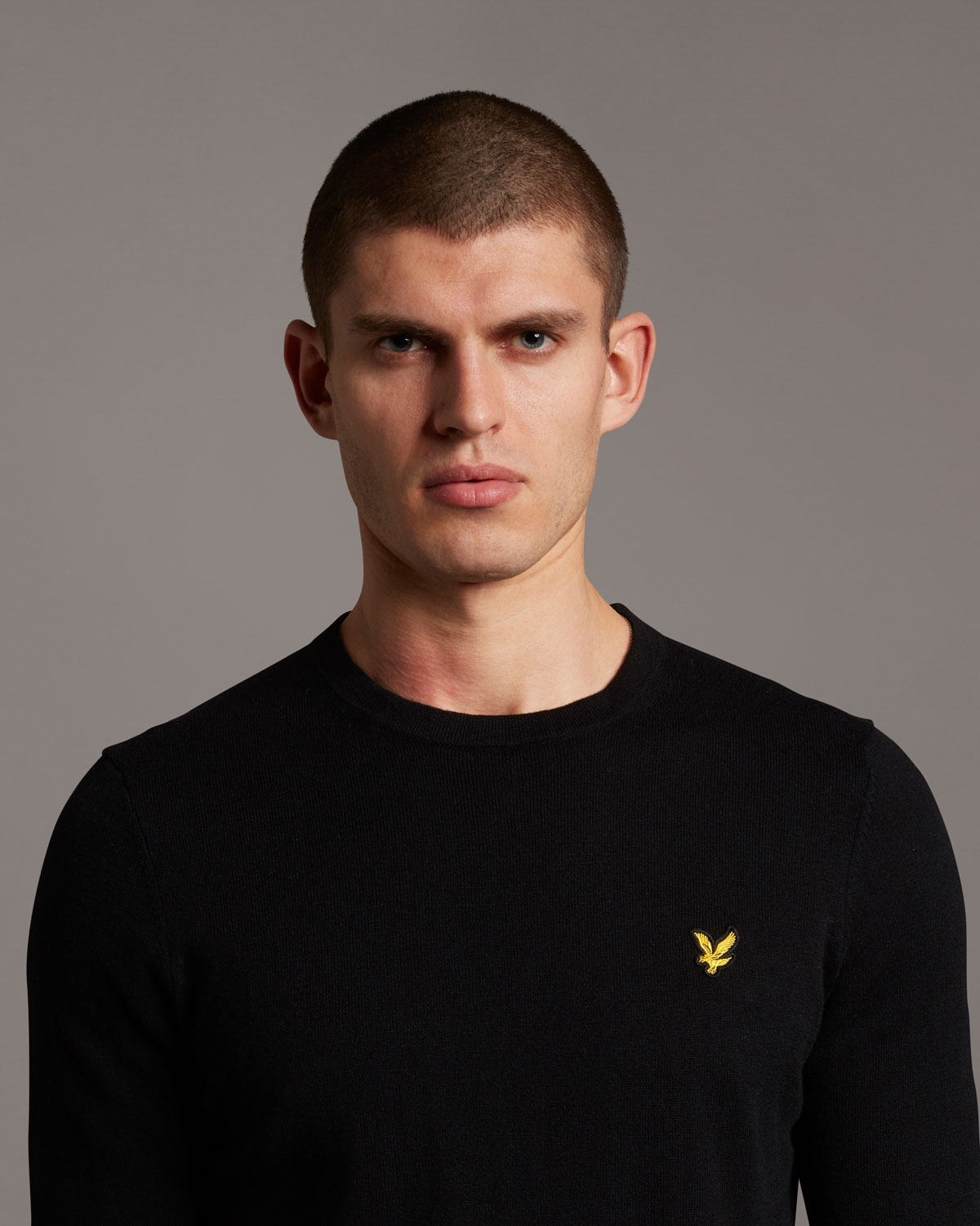 T shirt mezza manica nera in cotone con logo aquila gialla Very well made.