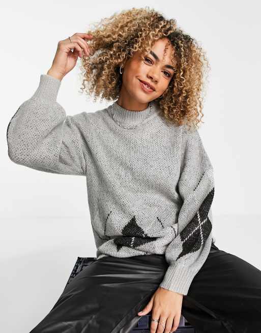 Noisy May Maglione con maniche a sbuffo e motivo a losanghe colore grigio Very well made.