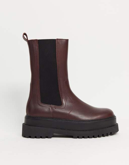 Mango chunky sole leather boot in burgundy Very well made.