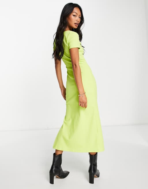 Mango ruched front ribbed midi dress in lime Very well made.