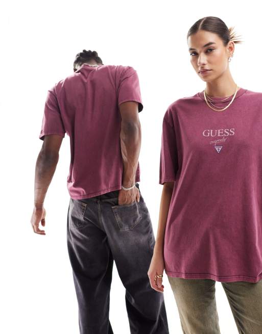 Guess Originals Baker T shirt unisexe avec logo imprim Bordeaux Very well made.