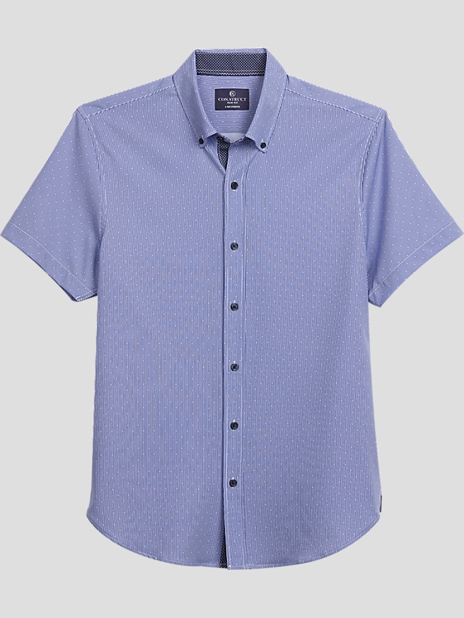 CONSTRUCT BLUE CHAMBRAY SHARK PRINT SHORT SLEEVE SHIRT Very well made.