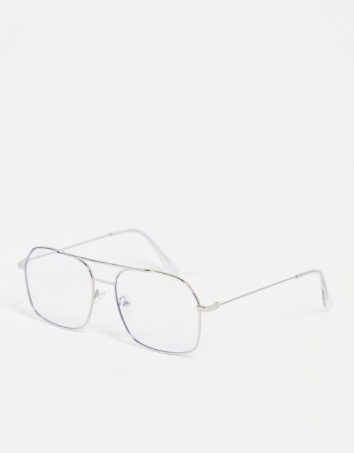 ASOS DESIGN metal aviator clear lens glasses with blue light in Very well made.