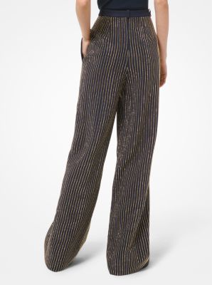 Crystal Pinstripe Double Crepe Sabl Wide Leg Trousers Michael Kors Very well made.