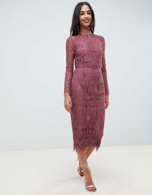 ASOS DESIGN lace long sleeve midi pencil dress Very well made.