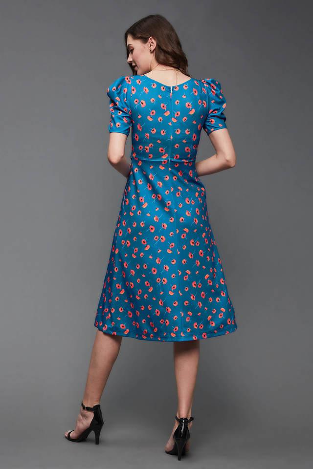 Buy MISS CHASE Blue Floral V Neck Polyester Women s Midi Dress Very well made.