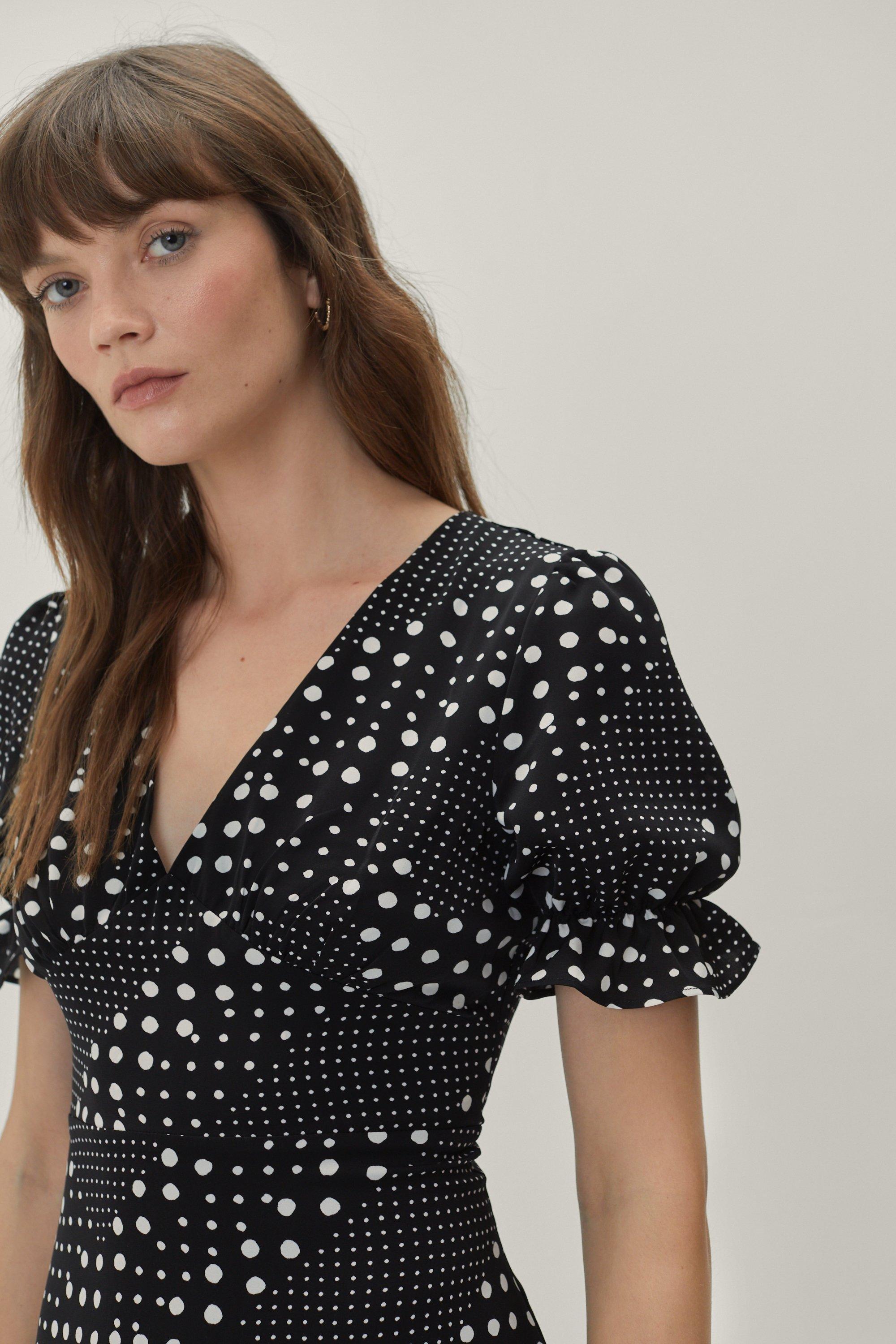 V Neck Mixed Print Spot Midi Tea Dress in Multi One Nation Very well made.
