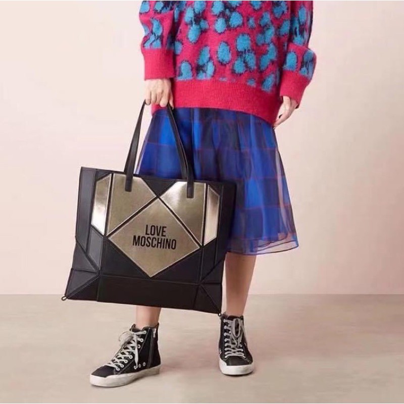 LOVE MOSCHINO GEOMETRIC TOTE BAG GOLD BLACK Shopee Thailand Very well made.