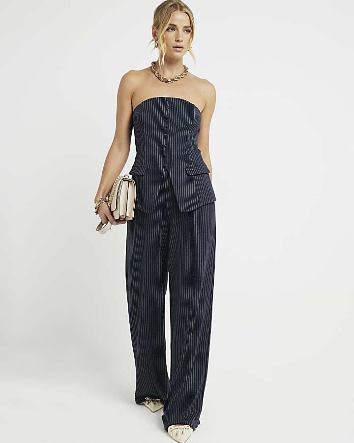 Navy stripe wide leg trousers River Island Very well made.