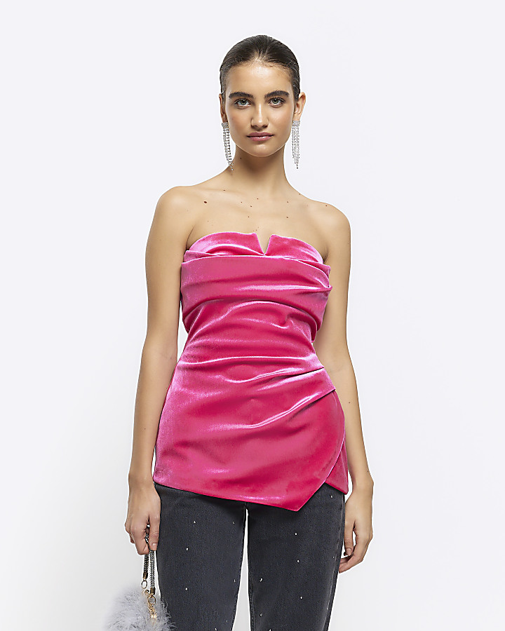 Pink velvet ruched bandeau top Very well made.