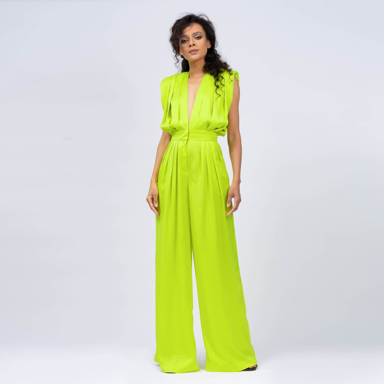 Neon Green Draped Maxi Jumpsuit BLUZAT Wolf Badger Very well made.