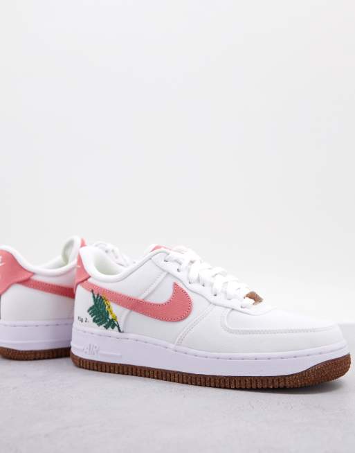 Nike Air Force 1 07 trainers in white and burgundy with floral embroidery WHITE Very well made.