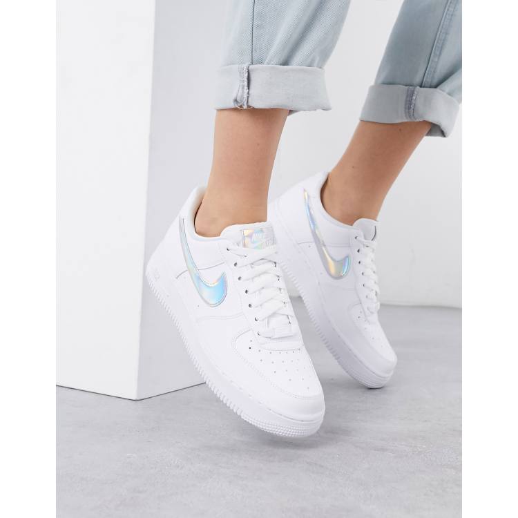 Nike Air Force 1 07 trainers in white and metallic silver Very well made.