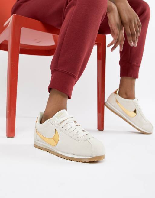 Nike Beige With Gold Swoosh Suede Cortez Se Trainers Very well made.