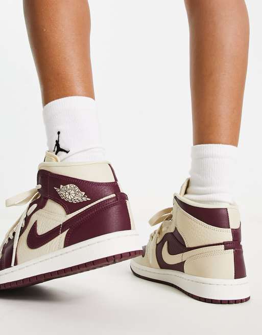 Nike Air Jordan 1 Mid sneakers in burgundy and cream ASOS Very well made.