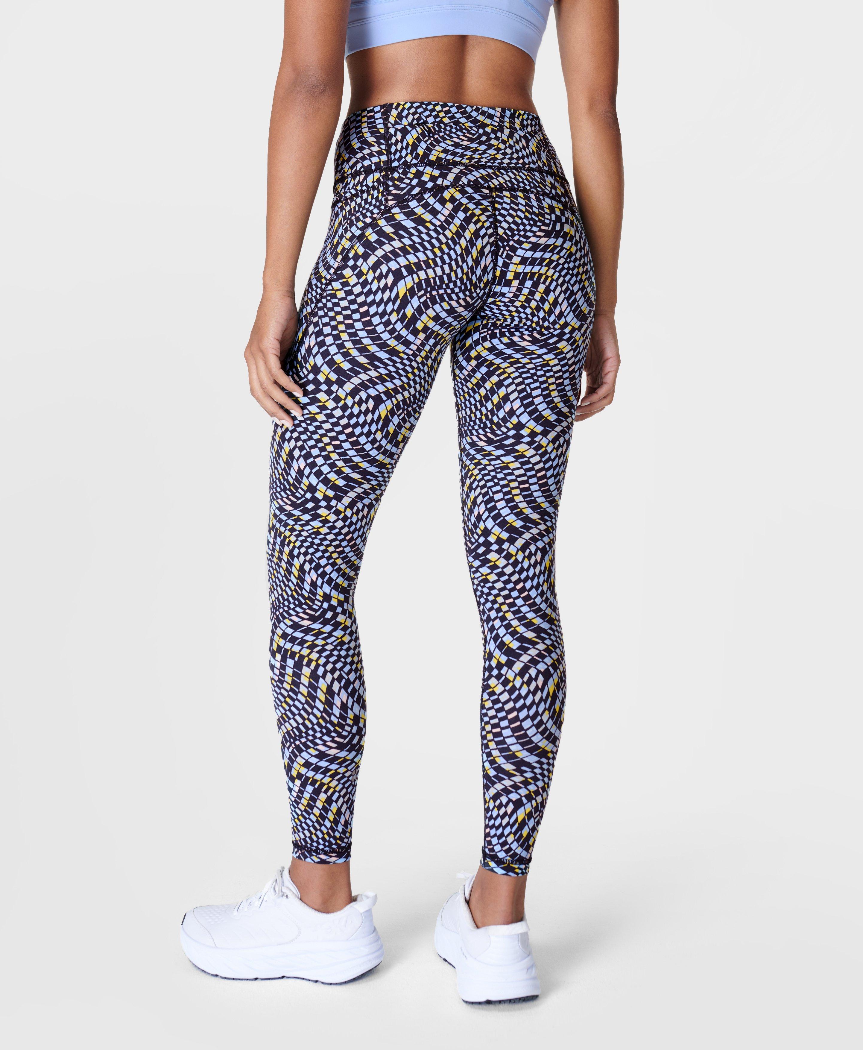 Power Gym Leggings Blue Fluid Check Print Women s Leggings Very well made.