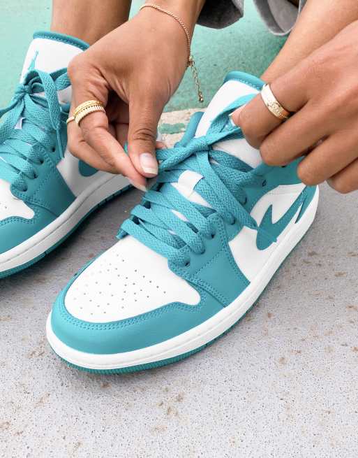 Air Jordan 1 Niedrige Sneaker in Wei und T rkis ASOS Very well made.