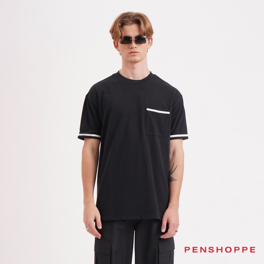 Penshoppe Relaxed Fit T Shirt With Pocket For Men Black Mustard Very well made.