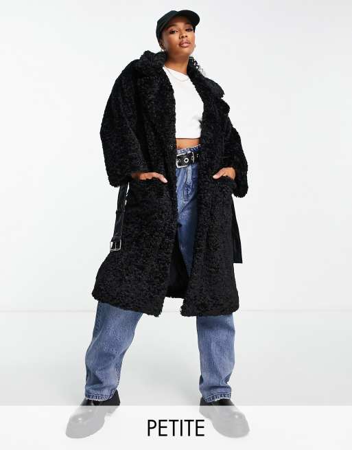DTT Petite Teddy longline double breasted borg jacket in black Very well made.