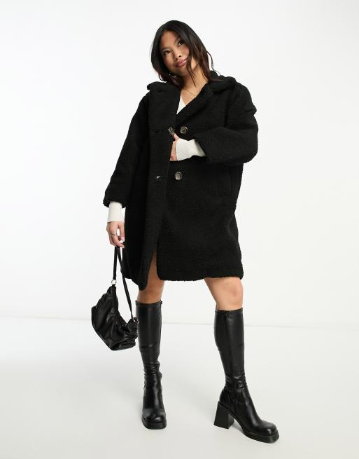 DTT Petite Teddy longline double breasted teddy jacket in black Very well made.