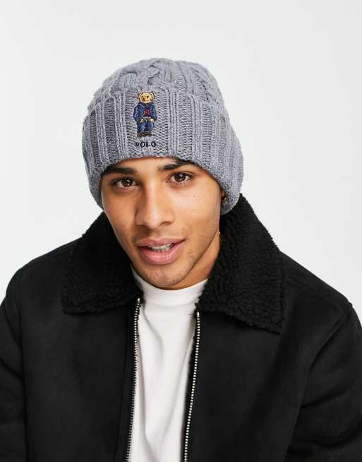 Polo Ralph Lauren cable knit wool beanie in grey with bear logo ASOS Very well made.