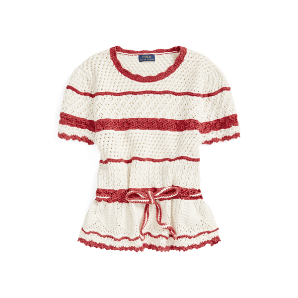 POLO RALPH LAUREN Striped Pointelle Knit Jumper T Shirt in Brown Very well made.