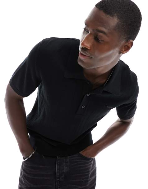 ASOS DESIGN knitted muscle fit polo shirt in black Very well made.
