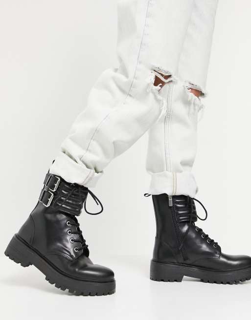 Pull Bear lace up biker boot with chunky sole in black ASOS Very well made.
