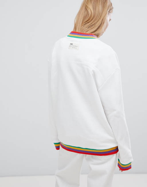 Puma Exclusive Oversized Cotton Rainbow Sweatshirt In White Very well made.
