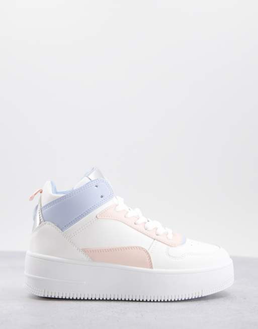 Qupid chunky high top sneakers in white and pastel mix Very well made.