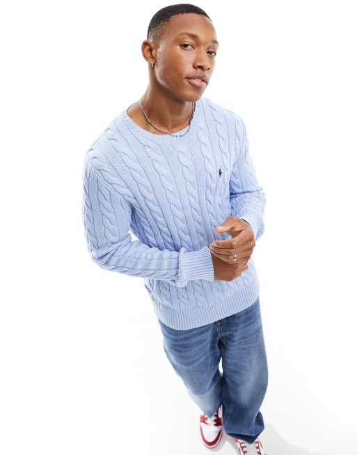 Polo Ralph Lauren Driver icon logo cotton cable knit sweater in light blue Very well made.