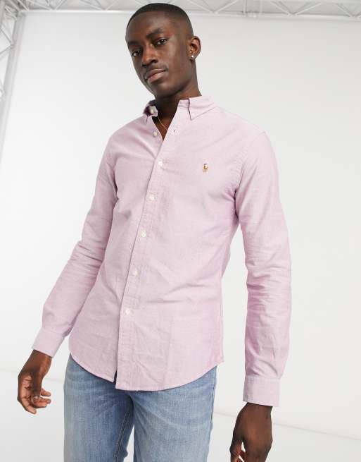 Polo Ralph Lauren icon logo stripe oxford shirt slim fit in pink Very well made.