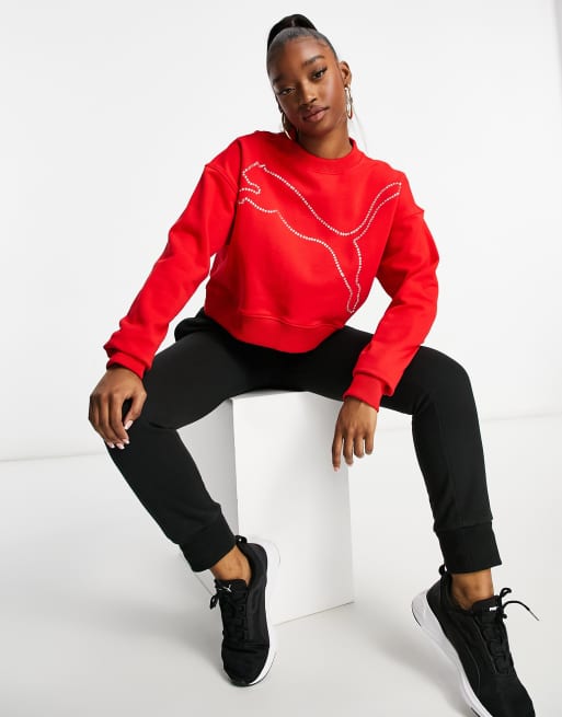 PUMA Womens Amplified Cropped Hoodie Plus Casual Outerwear Casual Red Very well made.