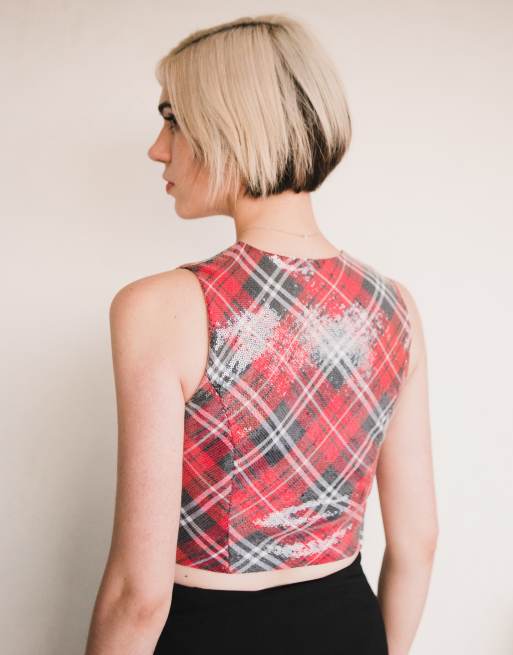 Labelrail x Julia Cumming tartan sequin vest in red Very well made.