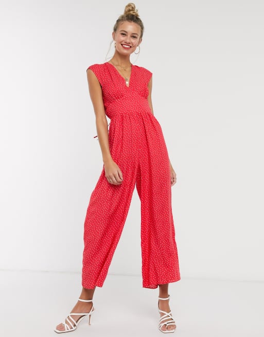 ASOS DESIGN sleeveless tea jumpsuit in red polka dot ASOS Very well made.