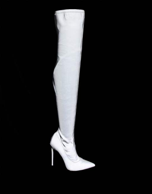ASOS DESIGN Kendra stiletto thigh high boots in reflective Very well made.