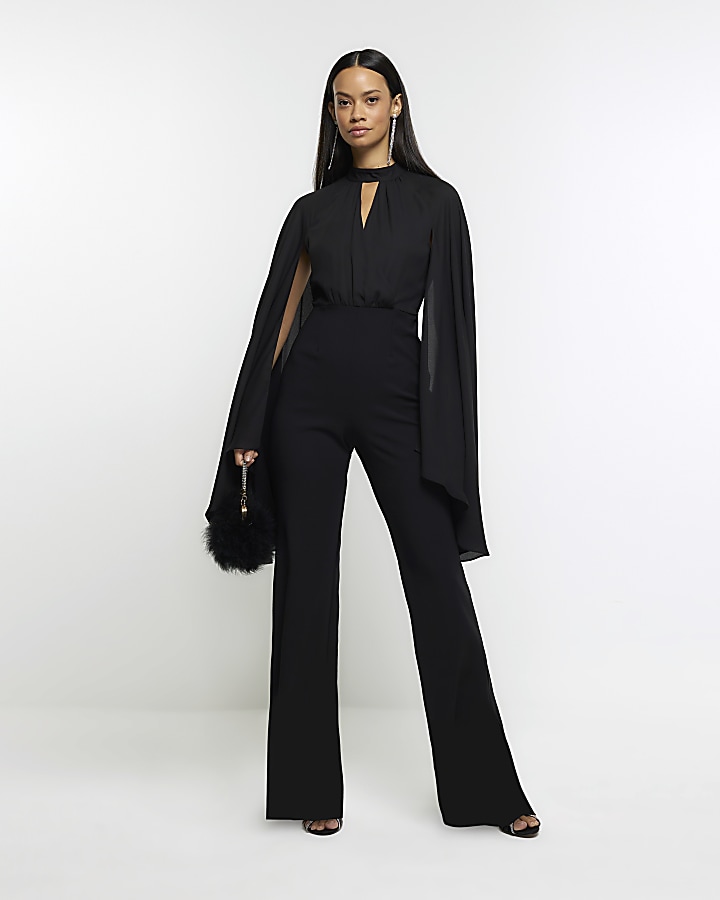 Black cape wide leg jumpsuit River Island Very well made.